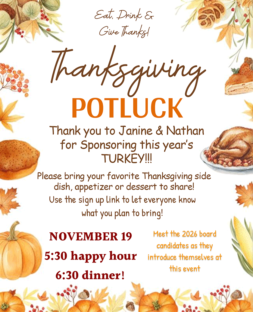 During the potluck, the candidates will introduce themselvesāso be sure to attend! Their bios are here for you to review ahead of time.